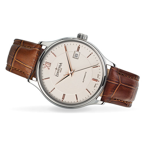 DAVOSA has created a Classic range in the style of past epochs: A rounded case, dials with hand-applied numbers and indices, complemented by old-fashioned hands. All this gives the watches in DAVOSA’s Classic range the appeal of older timepieces – while modern, reliable and meticulously finished Swiss movements keep time within. All watches in the Classic range possess a characteristic round case with a glass back. This gives you a tantalising glimpse of the embellished interior with Geneva stripes and blued screws. Thanks to their shape, the Classic models are not only suitable for men. Quite the opposite: In the Classic range women can choose whether they would prefer to sport the weightier 40mm man’s version or the more elegant 34mm lady’s version on their wrist. DAVOSA Classic Lady watches are available with either Roman or Arabic numerals as desired.