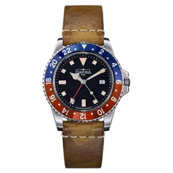 This timepiece is a tribute to the early times of professional diving watches with many historical references: the egg-shaped 10 ATM water resistant case, the typically curved crystal, printed Super-LumiNova indices and a bezel inlay made of aluminum. The Vintage Diver Quartz is a stylish everyday watch for all retro style lovers and, with its diameter of 39 mm, perfect for every wrist. The Swiss quality movement Ronda 505/24h also allows the display of a second time zone which is highlighted by a red hand.