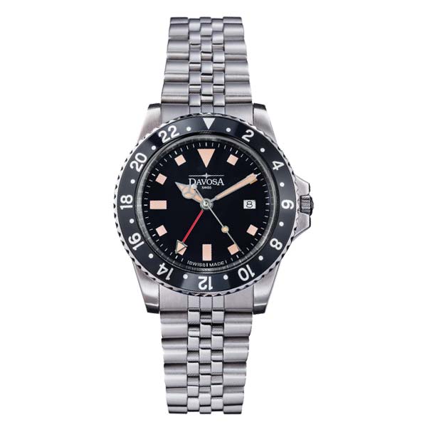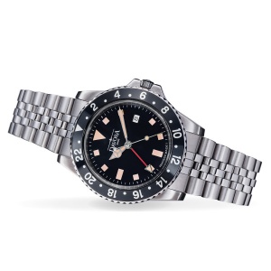 This timepiece is a tribute to the early times of professional diving watches with many historical references: the egg-shaped 10 ATM water resistant case, the typically curved crystal, printed Super-LumiNova indices and a bezel inlay made of aluminum. The Vintage Diver Quartz is a stylish everyday watch for all retro style lovers and, with its diameter of 39 mm, perfect for every wrist. The Swiss quality movement Ronda 505/24h also allows the display of a second time zone which is highlighted by a red hand.