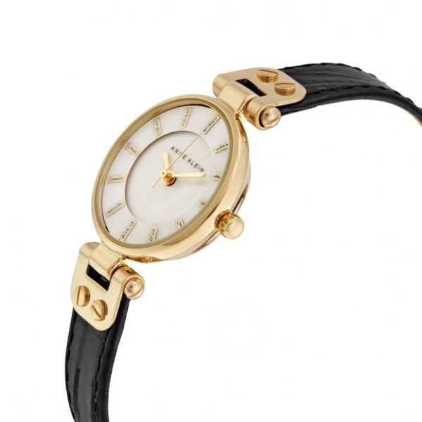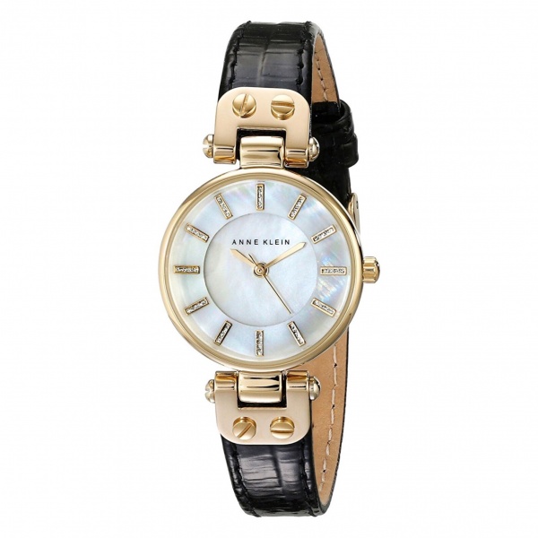 | Collection: | Anne Klein Women’s Gold-tone and Black Leather Strap Watch |