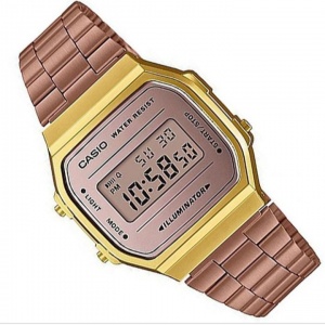 Quartz Movement Case / bezel material: Resin / Gold tone Adjustable Clasp Stainless Steel Band Rose gold Ion Plated Band Mineral Glass Water Resistant Electro-Luminescent Backlight1/100-Second StopwatchMeasuring Capacity: 59’59.99″Measuring Modes: Elapsed Time, Split Time, 1st-2nd Place TimesDaily AlarmHourly Time SignalAuto-Calendar (28 days for February)12/24-Hour FormatRegular Timekeeping:Digital: Hour, Minute, Second, am/pm, Month, Date, Day
