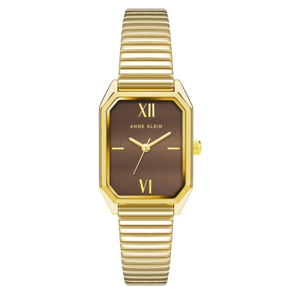 This beautiful gold-tone square watch from Anne Klein is a stunning accessory to add to any outfit. With its brown dial and gold-tone bezel, this watch can blend beautifully with any look.