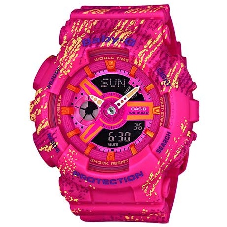 The hour and minute hands are decorated with accent colors, giving these models overall sporty designs. The base models are the mechanical face design BA-110. The three G-SHOCK models of this lineup are available in black, blue, or white. The BABY-G models come in vivid pop pink as well as black and white, which can be paired with the corresponding G-SHOCK colors