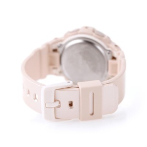 Subtle shine and muted colors play across the round, multi-layered face design of the BGA-280. The bezel ring and index marks in glossy metallic complete the sharp, yet casual look.