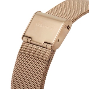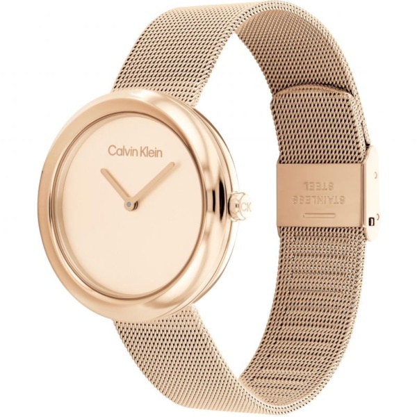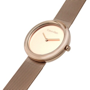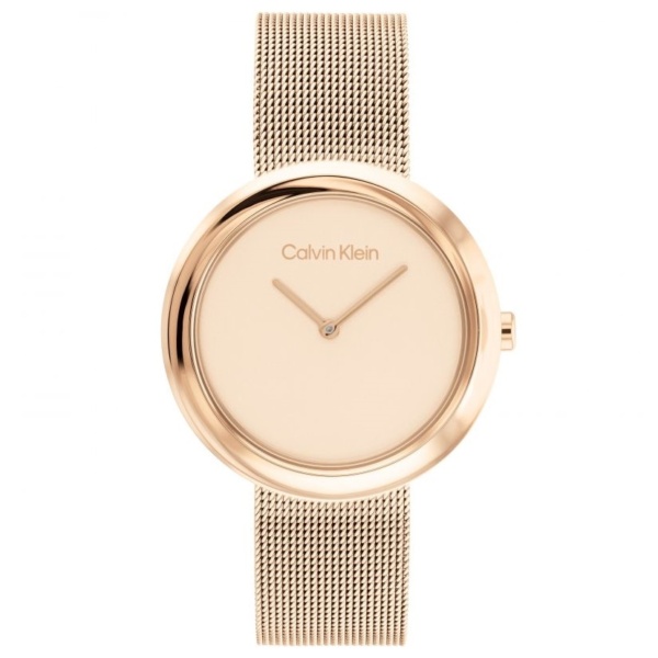 Alluring Sculpted Lines: Calvin Klein Women’s timepiece features unique spiral-like bezel, clean, minimalistic dial and stylish mesh bracelet.