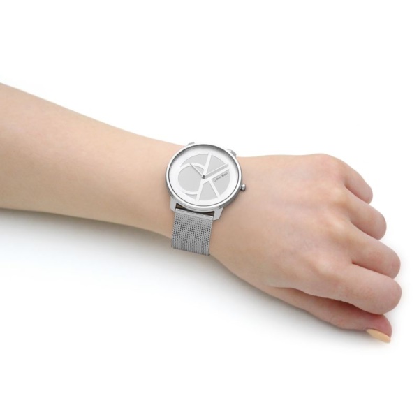 Iconic style. Slim, structural case design and two-layer dial accented with the Calvin Klein acronym. Available on a mesh bracelet