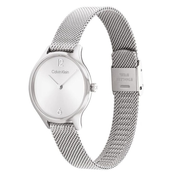 Calvin Klein Timeless Womens Silver Stainless Steel Quartz Silver Dial Silver Mesh Stainless Steel Bracelet Watch
