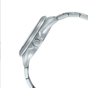 A 3-hand model with calendar featuring a long arc-shaped lug. Uses an easy-to-read, arrow-shaped hour hand