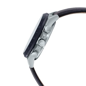 The EQS-940BL solar-powered chronograph features striking inset dials in a watch face designed with depth and dimension. Thick, sharp index markings add bold accents that make a powerful statement. With a second hand marked in eye-catching red, plus red inset dials evoking the way a rotor glows red-hot when you slam on the brakes, this sporty design is all about the EDIFICE motorsports concept.