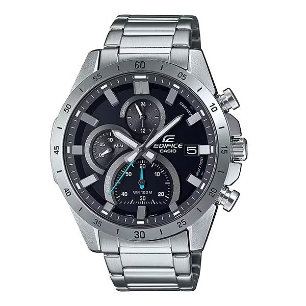 Bold Designed Chronograph | A large standard EDIFICE chronograph. Extra-thick, three-dimensional, sharp indices and inner dial are finished in a dynamic, sporty design. A retro-grade dial on the 9 o’clock side of the inner dial advances in a fan shape with the stopwatch minute hand and returns to 0 every 10 minutes.