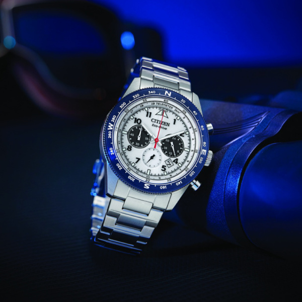 Part of the Chronograph collection, this timepiece incorporates sophisticated design and precise, modern Eco-Drive technology that works just as hard as you do. This watch features a rich easy-to-read white dial, date display, 3 sub dials and 100 meters water resistance. Additional features include mineral crystal, blue-tone stainless-steel case and bracelet that makes it ideal for both work and play.