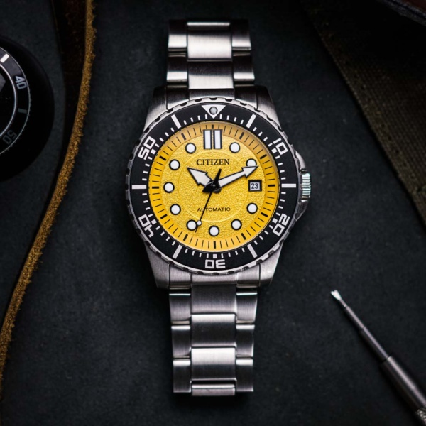 Be Bright, Be Bold and Be Yourself! Make everyone crave your style by sporting the unique Urban Mecha featuring a large grained and frosted Canary Yellow dial with a detailed black unidirectional rotating bezel. An Extraordinary watch for the Extraordinary you! This Urban Mecha is both fun in it’s looks and serious with it’s performance, powered by CITIZEN’s 8210 mechanical movement.