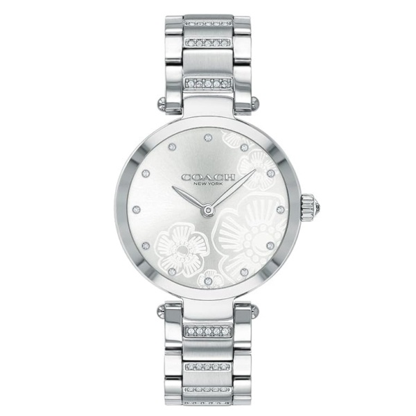 Named for the glamorous New York City street, the Park watch is an elegant style perfect for day or night. Sparkling with crystals, this stainless steel bracelet design features Coach’s prairie-inspired Tea Rose motif etched on the dial.