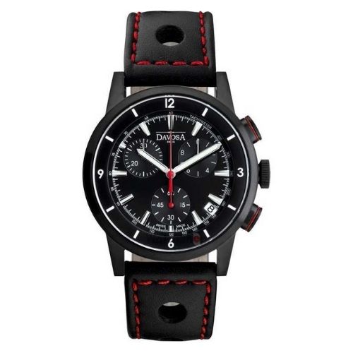 Davosa Ralleye Chronograph 16247655 is a functional and special Gents watch . Case material is Black Ion-plated Steel while the dial colour is Black. The features of the watch include (among others) a chronograf and date function. This model has got 100 metres water resistancy – it is suitable for swimming, but not guaranteed to be resistant to jumping into the pool. We ship it with an original box and a guarantee from the manufacturer.