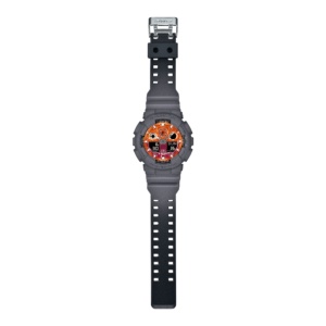 Beginning with the GA-100 with distinctive large case and the GA-2100 with octagonal case, the design brings in motifs of billowing smoke for the band and features a brightly burning dial in flames of blues or oranges.