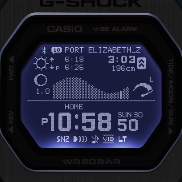 Just set the dedicated smartphone app to any of 3,300 surf spots around the world to check tide patterns and daylight conditions right where you are. The wide watch face with high-resolution Memory in Pixel (MIP) LCD provides clear readings of tide graphs, moon age, high/low tide times and levels, and sunrise/sunset times — all at a glance.