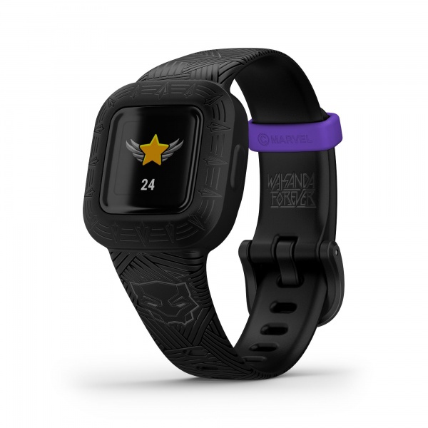 vívofit jr. 3 isn’t just a fitness tracker for kids. It’s an interactive experience where your child’s activity unlocks exciting Marvel Avengers app adventures. Featuring a colorful display with the Marvel designs. This kid-tough, swim-friendly fitness tracker gets up to 1 year of battery life. With it, kids can uncover the app adventures by completing 60 minutes of daily activity.