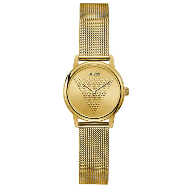 Our iconic triangle logo featured on a gold-tone case and self-adjustable mesh bracelet will complete your effortlessly sleek and trendy style.