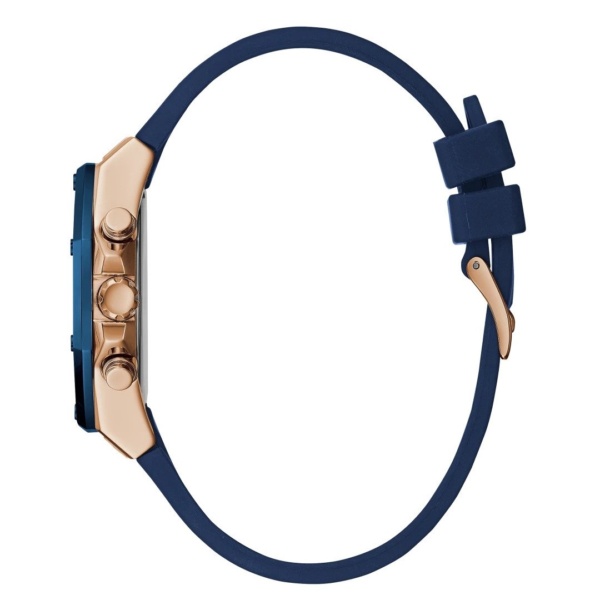 This sport style will be sure to make an impact as it has cut out detailing on the sub-eyes that show the movement of the watch and the cut out details continue on the silicone strap for that added detail.