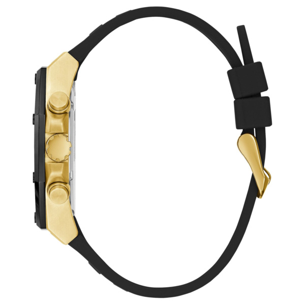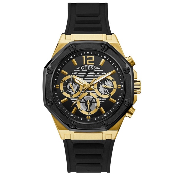 A watch that gives you the momentum to propel through your day. A chrono-look multi-function dial with cut-thru details coordinates with a cut-thru silicone strap.