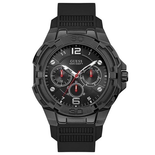A perfect amalgamation of style and functionality, this men’s analog watch from Guess is a must-have wrist essential. Its silicon strap comes in a stunning black hue that elevates the look of the watch. Operated by a quartz movement. It features plain three hands, stick and numeral hour markings, three subdials and a crown for time adjustment. Furthermore, it is complemented with a buckle clasp that ensures a secure fit on the wrist.