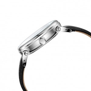 | Bracelet: | Black leather strap, tang buckle |