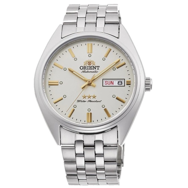 Orient 21 Jewels Self-Winding Automatic Movement, Oscillation Frequency: “21,600 oscillations per hour (6 beats per sec)” Stainless Steel Case and Band with Fold Over Deployment Clasp Mineral Crystal, Day/Date Display with Spanish Option, Hands and Markers Case Size: 40 mm Diameter, 10.8 mm Thickness Water Resistant – 30 M, Screw Down Case back