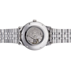 This is Orient contemporary mechanical watch with date. New Powered by an in-house manufactured automatic Calibre F6722, this new timepiece expertly balances a precision mechanical movement with modern design and colour combinations. An attractive see-through case back enhances the refined aesthetic design. This timepiece supports water resistance of 50 meters.