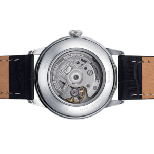 The Classic and Simple Style 38 features traditional design features such as a convex dial and domed glass. The series has been a consistent best-seller over the last decade in 70 countries and regions around the world. Until now, they featured mostly 40.5-mm case diameters, however these latest models feature a more compact 38-mm case. Global watch trends are shifting from large watches with a bold presence to smaller watches that fit comfortably on the wrist. Furthermore, there has been a particular trend towards simple watches displaying only the time using ageless designs with classical looks. It features both these trends in a size that suits both men and women. This is powered by Orient’s automatic in-house 46-F6 series caliber F6724 movement providing high performance and reliability. The beautiful finishing on the movement can be admired through the see-through case back, and the domed glass and convex dial with simple bar indices create a vintage feel.