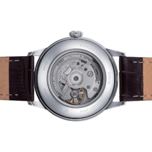 The Classic and Simple Style 38 features traditional design features such as a convex dial and domed glass. The series has been a consistent best-seller over the last decade in 70 countries and regions around the world. Until now, they featured mostly 40.5-mm case diameters, however these latest models feature a more compact 38-mm case. Global watch trends are shifting from large watches with a bold presence to smaller watches that fit comfortably on the wrist. Furthermore, there has been a particular trend towards simple watches displaying only the time using ageless designs with classical looks. It features both these trends in a size that suits both men and women. This is powered by Orient’s automatic in-house 46-F6 series caliber F6724 movement providing high performance and reliability. The beautiful finishing on the movement can be admired through the see-through case back, and the domed glass and convex dial with simple bar indices create a vintage feel.