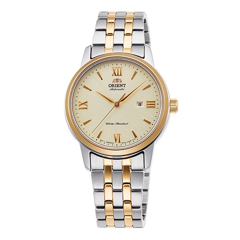 This is Orient contemporary mechanical watch with date for Ladies. Powered by an in-house manufactured automatic Calibre 55744, this new timepiece expertly balances a precision mechanical movement with modern design and fashion-forward colour combinations. An attractive see-through case back enhances the refined aesthetic design. The simple and clean design equipped with sapphire crystal provide a perfect accent for any occasion.
