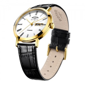 This Les Originales mens Windsor watch features a 37mm gold plated case with a stunning white dial which features a day and date display powered by a Swiss Ronda movement. This watch is completed by a Alligator pattern black leather strap. As with all Rotary watches, this watch is water resistant to the Rotary Dolphin Standard so you can swim and dive all day.