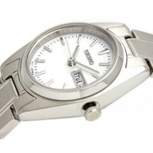 | Features: | – Day and date display – Pull/push crown – Silver tone hands And markers |